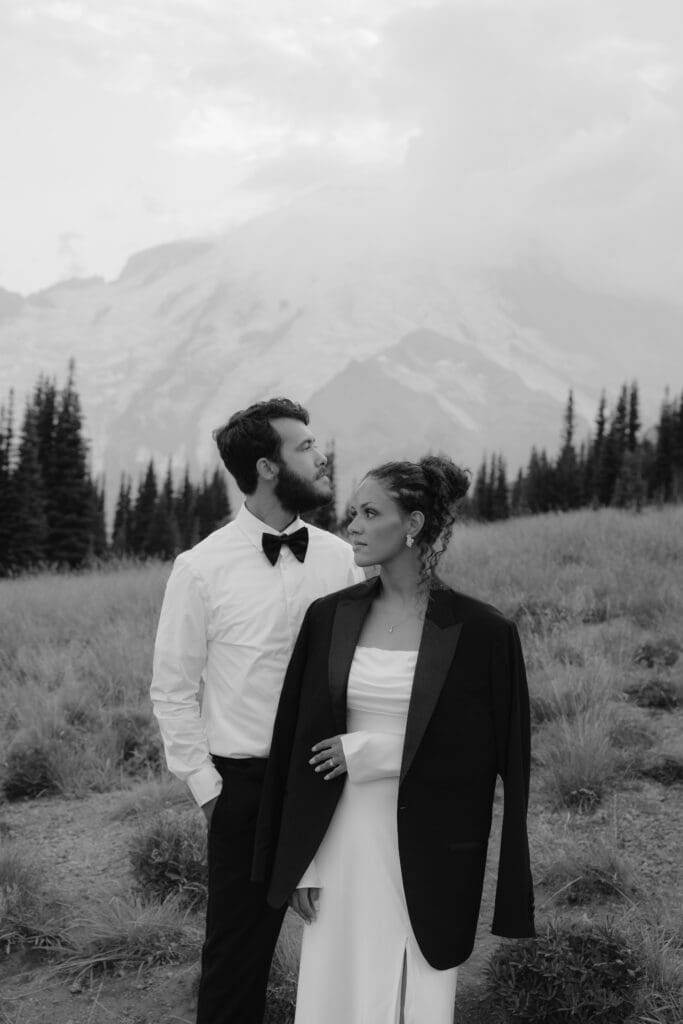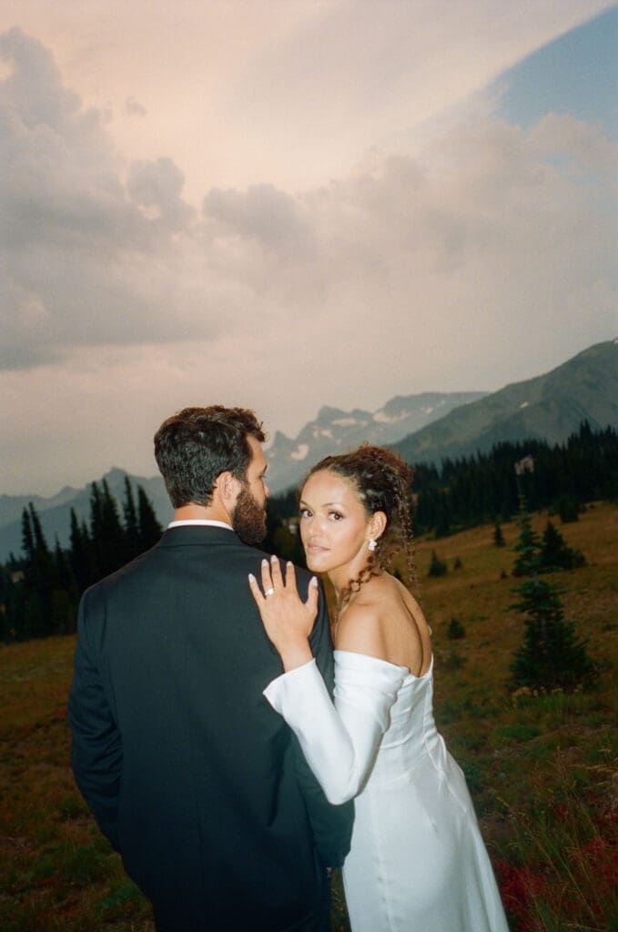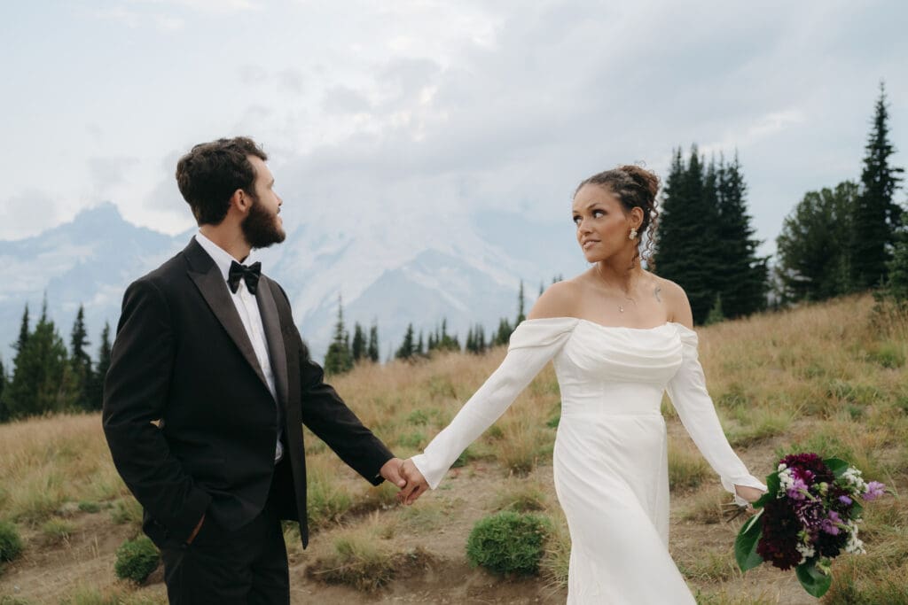 I’ve hiked in the park for years and love photographing elopements at Rainier. Whether you’re dreaming of hiking for a private elopement or being surrounded by your closest family and friends while you say your vows against a picturesque mountain backdrop, Mount Rainier is a great location choice.
