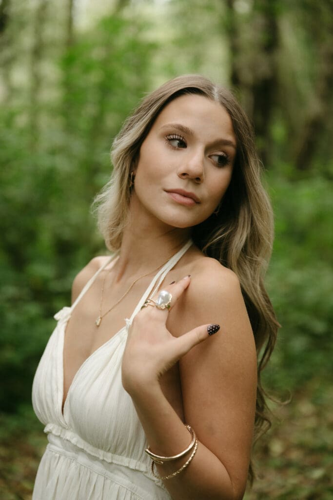 We kept poses soft and casual. Since Audrey’s outfits and locations were very nature centered we incorporated those elements into her poses… a mix of more traditional yearbook-esque photos and some more candid moments of her walking through the trees or sitting on a log soaking in the feel of the forest.